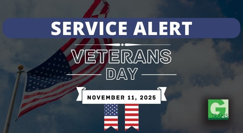 Tenga en cuenta que el Edificio de Administración de GTrans estará cerrado el 11 de noviembre en honor al Día de los Veteranos.